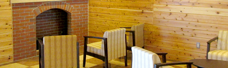 ログハウス風の明るい施設
